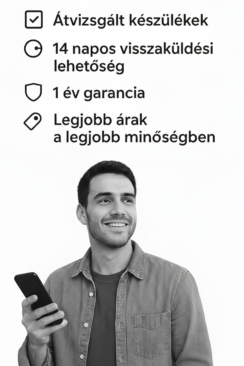 Minden készülékünk teljes körűen bevizsgált, garanciával ellátott és megbízható forrásból származik, hogy biztonságosan vásárolhass prémium Apple-telefonokat olcsóbban.